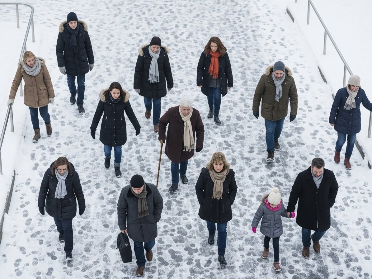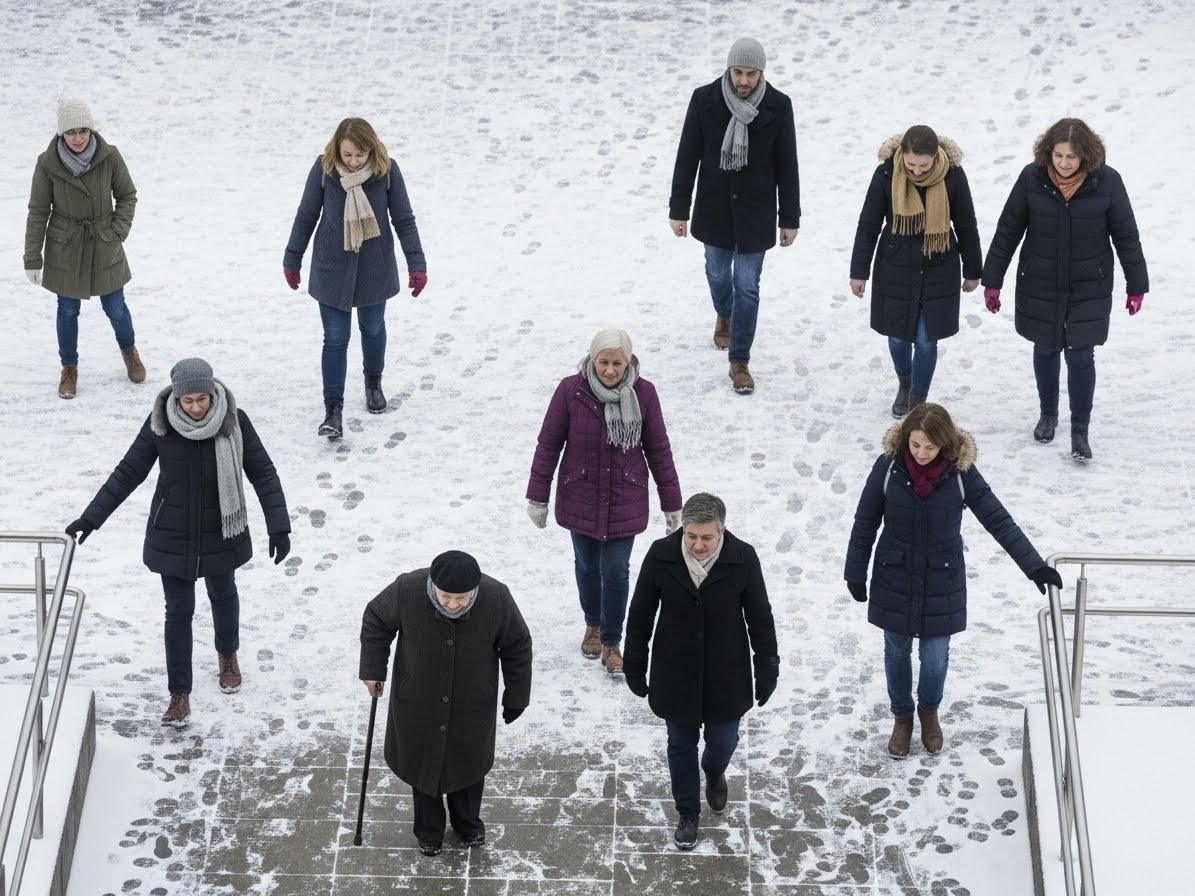 - ✔️ 빙판길에서는 작은 보폭과 발바닥 전체로 걷는 습관을 들이세요.