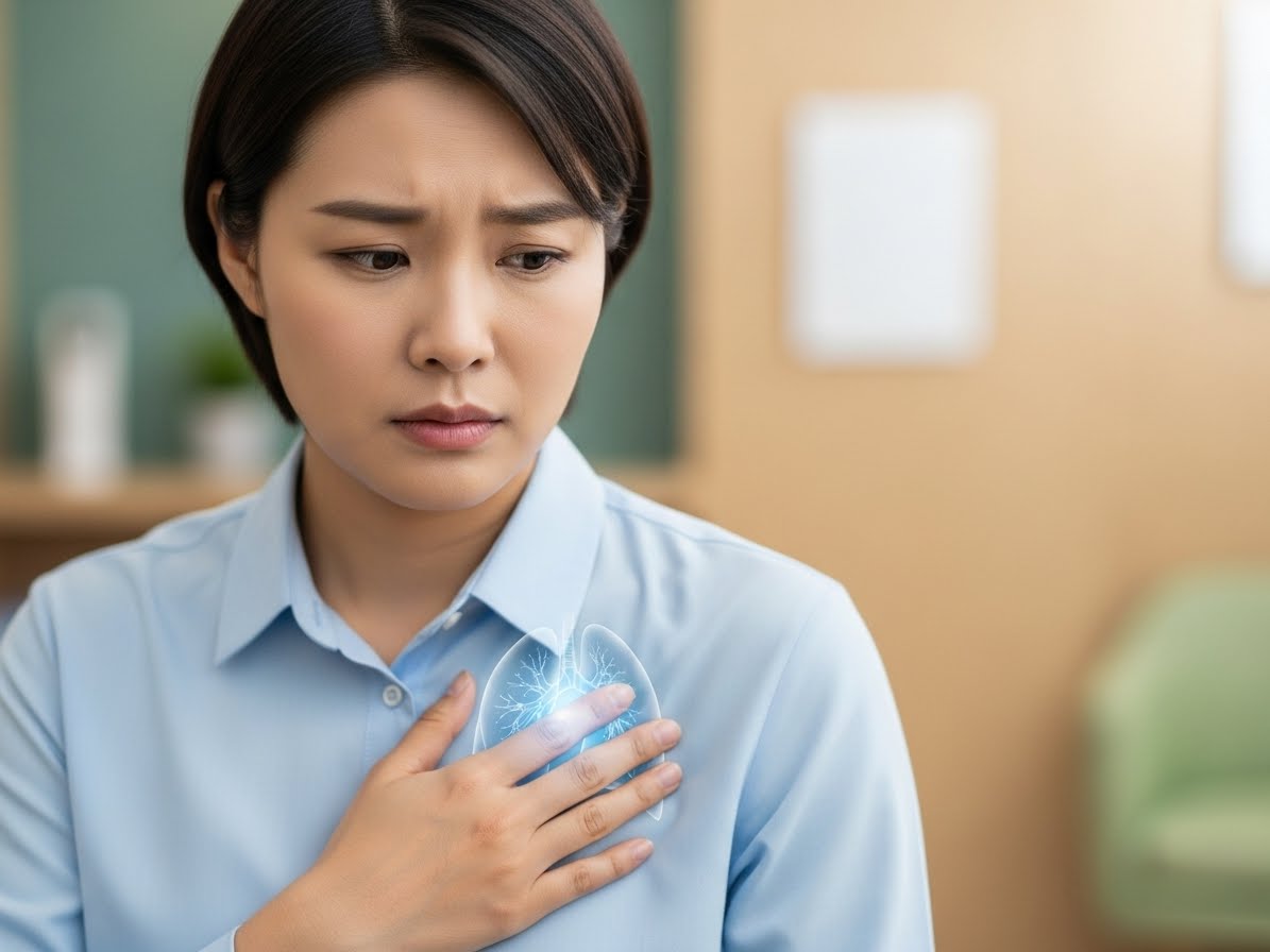 암 덩어리가 커지면서 기관지를 막거나, 폐 기능을 저하시켜 평소와 다르게 숨이 차고 호흡이 가빠지는 증상을 보일 수 있습니다. 운동할 때뿐만 아니라 일상생활 중에도 느껴진다면 반드시 검진이 필요합니다.