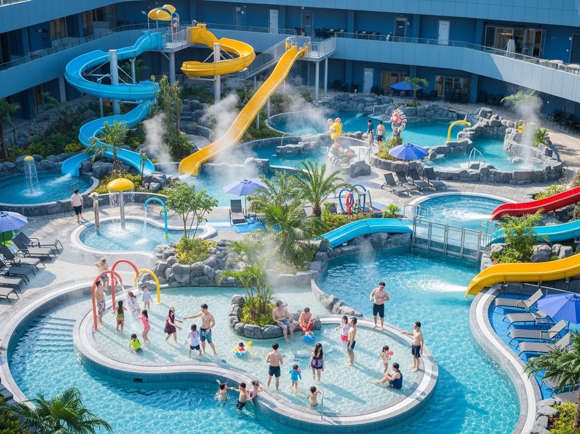 아이들과 함께하는 가족 여행이라면 워터파크 시설을 갖춘 온천 테마파크가 좋습니다. 실내외 다양한 풀과 슬라이드, 파도풀 등 즐길 거리가 풍부하여 온 가족이 하루 종일 신나는 시간을 보낼 수 있습니다. 온천 물놀이와 스파를 동시에 즐길 수 있죠.